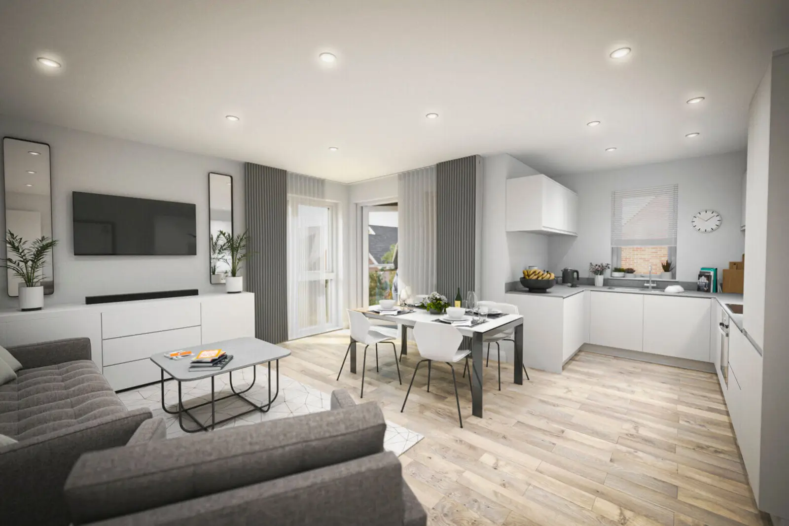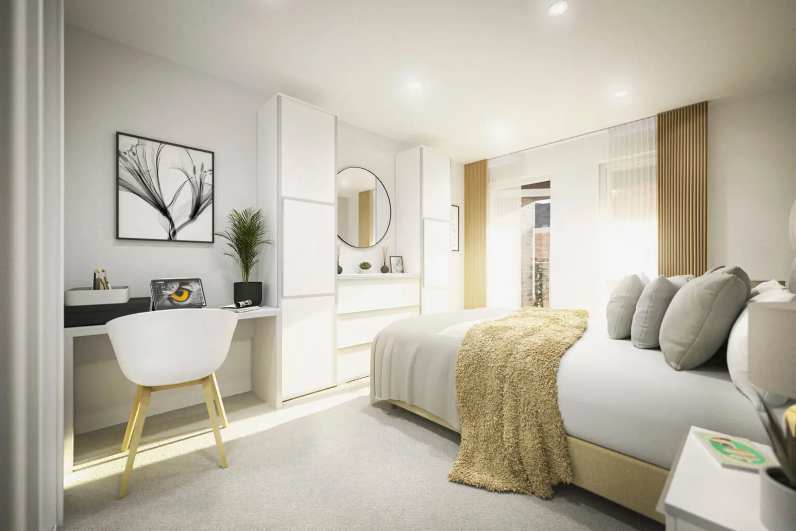We focused on producing two visualisations: one for the bedroom and another for the living room. These images were designed to highlight the thoughtful layout and modern design that characterises the apartments.