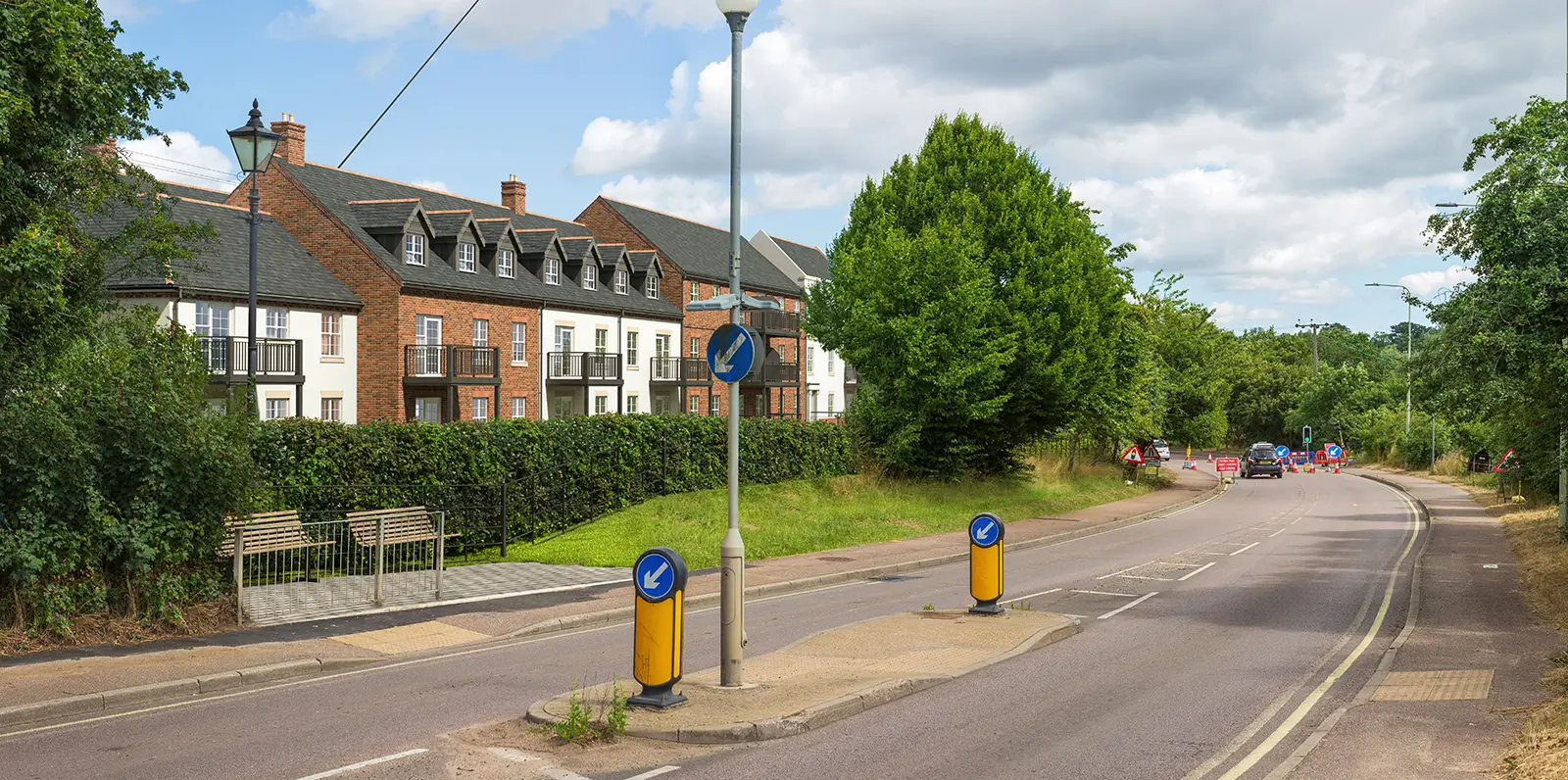 The project is located in an historically rich area, originally a Roman settlement known for its medieval timber-framed buildings and Victorian almshouses. Adjacent to the site is the largest millennium green in the UK, comprising 44 acres of grazing marsh and floodplains that serve as a habitat for diverse wildlife, including owls and otters. Previously, the site was derelict and overgrown, presenting an opportunity to transform it into a beneficial community resource that provides access to local facilities.